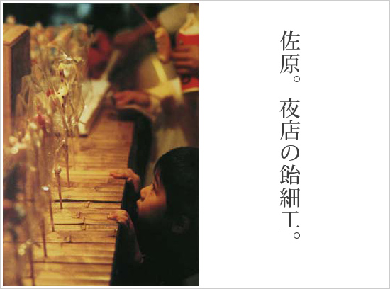 ひとつのものが仕上がるのに、時間にして五分程度だろうか。親指と人差し指、それに中指。この三本の指先で見事な飴細工の究極美を見せるのである。